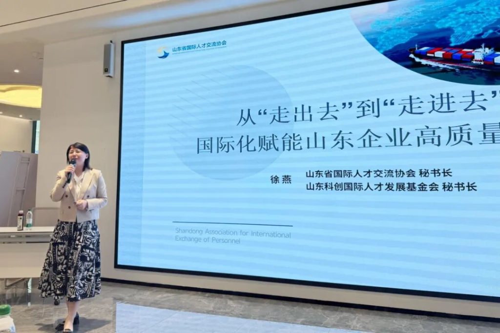 The keynote speaker of this event was Xu Yan, Secretary-General of the Shandong International Talent Exchange Association and the Shandong Sci-Tech Innovation International Talent Development Foundation. She provided a systematic overview of the global landscape for enterprise internationalization, policy opportunities supporting Shandong companies going global, and the advantages of platform-based services.